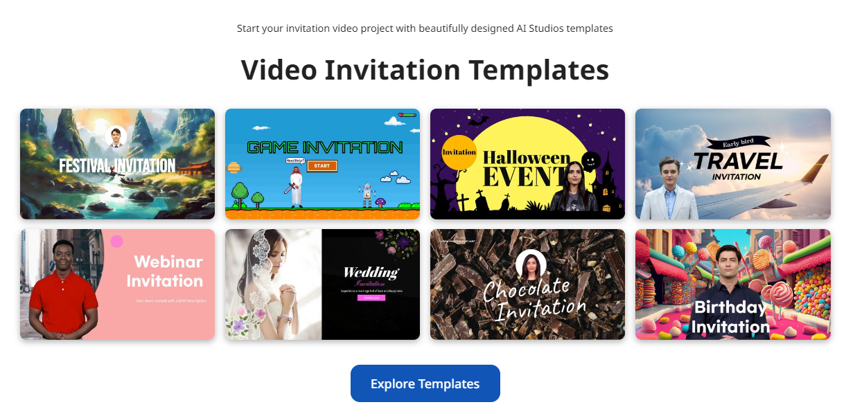 First, head over to video editor invitation maker. DeepBrain offers a user-friendly interface that simplifies the video creation process. You don’t need to download any software, as everything is accessible directly from your web browser.