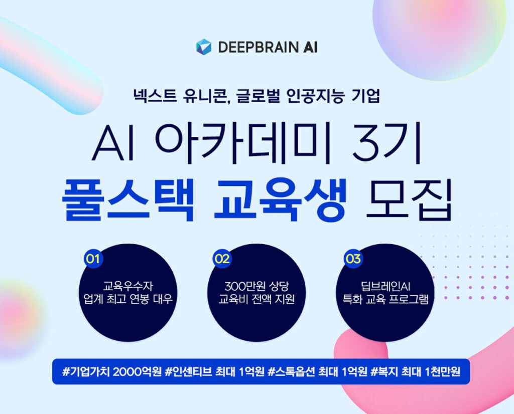 인공지능(AI) 전문 기업 딥브레인AI가 2022년 상반기 중 인력 보강을 목표로, 풀스택 개발자를 양성하는 AI 아카데미 3기 교육생을 오는 4월 11일까지 모집한다.