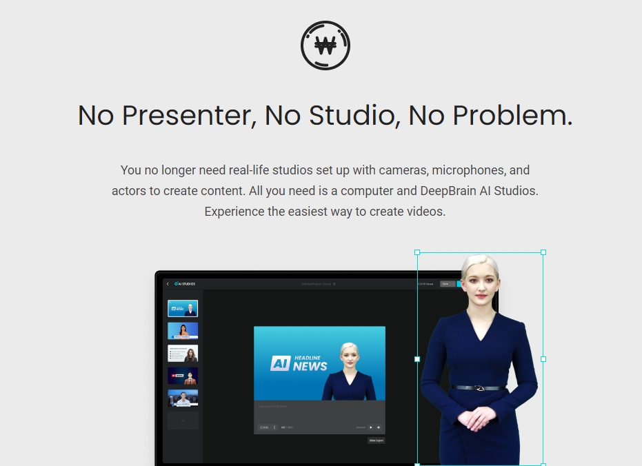 Typical video content production requires a lot of time, resources and man-power such as presenters, film crew to studios and equipment however, utilizing AI STUDIOS enables you to create high-quality presenter videos without additional filming for a fraction of the cost.