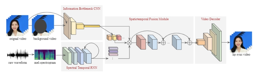 The Lip Sync method is a technology that controls the speech behavior (mouth shape, jaw movement, neck movement) of an image from a voice by synthesizing the original image so that the shape of the mouth matches a given voice by inputting an arbitrary voice in the video spoken by a particular person. In other words, you can synthesize a person image that speaks as an input of an arbitrary voice and background image.