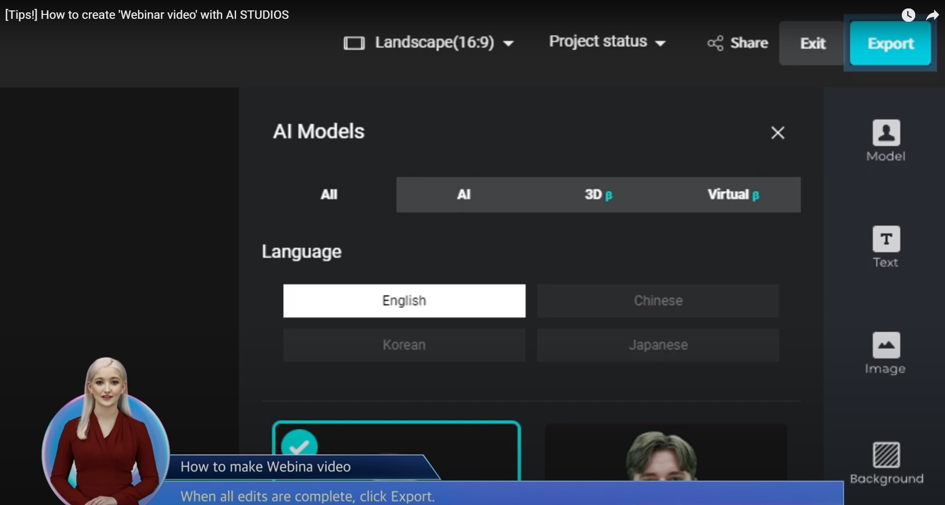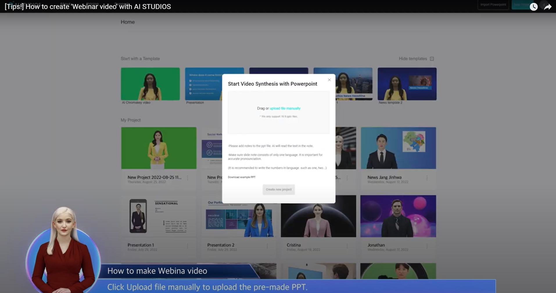 We’re going to make an Webinar Presentation Video using AI STUDIOS.