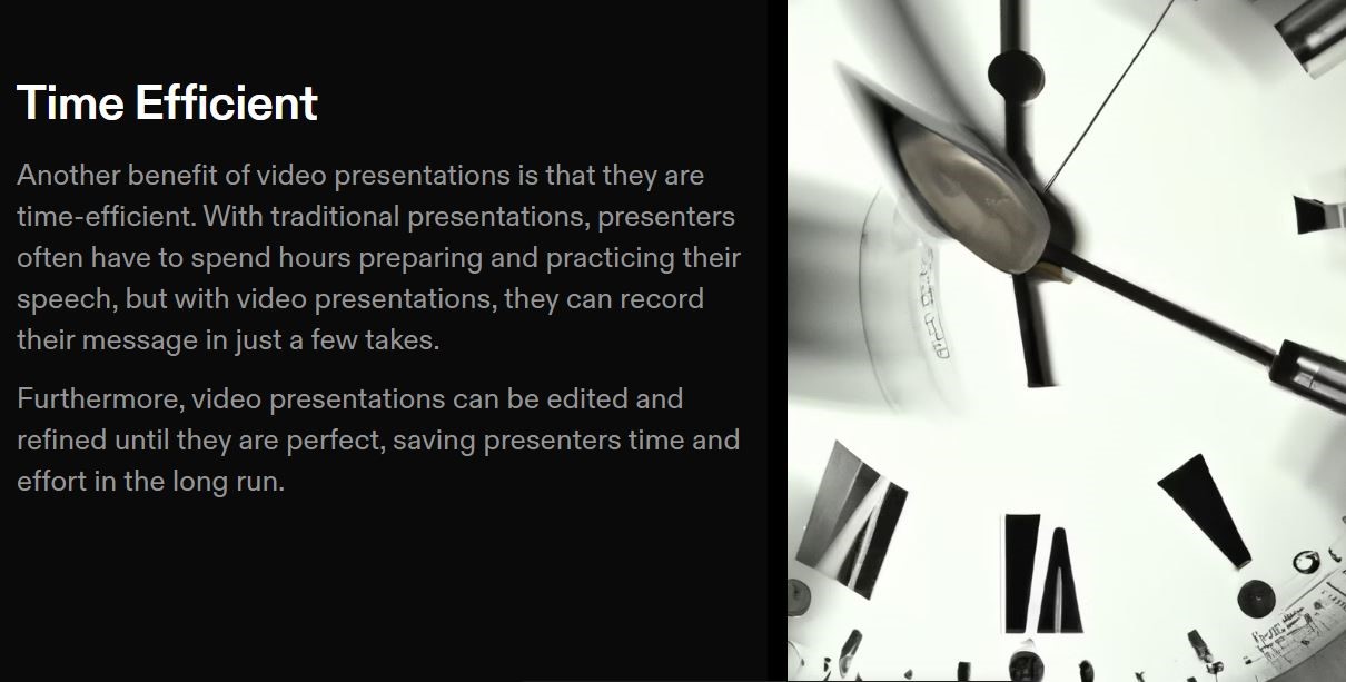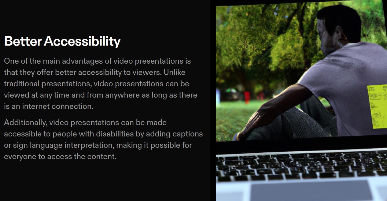 Overall, video presentations offer a number of benefits that make them an ideal choice for businesses looking to engage their audience and communicate their message effectively.